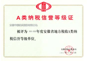 根據(jù)《安徽省地稅系統(tǒng)納稅信譽(yù)等級(jí)管理試行辦法》(皖地稅[200]66號(hào))等有關(guān)規(guī)定,稅務(wù)部門按照納稅人申請(qǐng)、主管地稅機(jī)關(guān)對(duì)納稅人2001年、2002年及2003年稅務(wù)登記、納稅申報(bào)、稅款繳納、財(cái)務(wù)管理、納稅資料報(bào)送、發(fā)票管理等方面的嚴(yán)格審核,安徽中德機(jī)床股份有限公司被評(píng)為:2001—2002年度安徽省地方稅收A類納稅信譽(yù)等級(jí)單位!