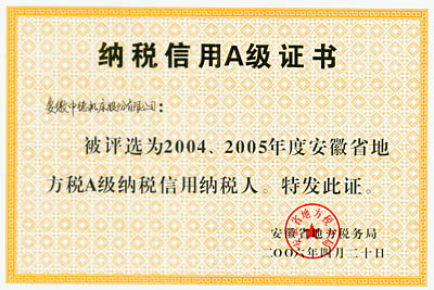 我公司繼被省地稅局評為“2001-2002年度省地稅A類納稅信譽等級單位”后,近日又被省地稅局評為“2004-2005年度安徽省地方稅A級納稅信用納稅人”。這是省地稅局對納稅人給予的最高榮譽,也充分體現(xiàn)了省地稅局對我公司近年來在稅務登記、納稅申報、稅款繳納、財務管理、納稅資料報送、發(fā)票管理等方面工作的認可。