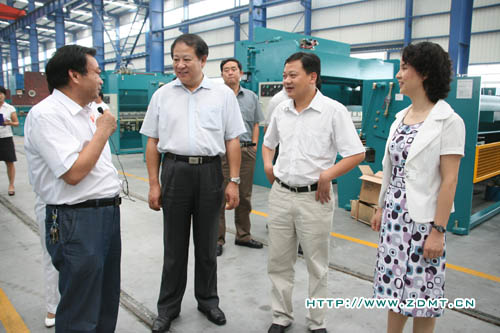 公司董事長鄭長玉向領(lǐng)導(dǎo)一行匯報了中德的發(fā)展歷程及目前的發(fā)展?fàn)顩r。重點介紹了我公司在車間管理和質(zhì)量監(jiān)督體制方面的完善工作,并從目前的發(fā)展局勢展望更好的發(fā)展前景。王司長也關(guān)切地向公司領(lǐng)導(dǎo)了解一些機(jī)器方面的情況,在聽到鄭董事長匯報說中德不會因目前的成績而有絲毫懈怠時,王司長滿意的點了點頭。參觀過大型裝配車間后,領(lǐng)導(dǎo)一行來到了成品車間,擺放在這里的一臺雙機(jī)聯(lián)動數(shù)控折彎機(jī)迅速地吸引了大家的眼球,鄭董事長向領(lǐng)導(dǎo)介紹說這臺機(jī)器已經(jīng)經(jīng)過商檢并即將發(fā)往波蘭并非常自豪地說這位波蘭客商正是看中了中德的實力才會放心的與我們合作。隨后公司總經(jīng)理鄭小平向領(lǐng)導(dǎo)介紹了目前中德的國外代理點及國外銷售情況,表示中德還有非常大的外貿(mào)發(fā)展空間。