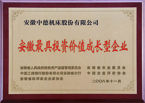能夠進(jìn)入2008年安徽最具投資價(jià)值企業(yè)的評(píng)估百強(qiáng),是對(duì)企業(yè)各個(gè)方面的能力的權(quán)威肯定,因?yàn)樵u(píng)價(jià)結(jié)果將為各級(jí)政府決策提供參考依據(jù),為金融機(jī)構(gòu)、融資機(jī)構(gòu)的企業(yè)信貸決策提供參考依據(jù),為企業(yè)充分展示自身的成長能力、投資價(jià)值和戰(zhàn)略合作伙伴提供機(jī)會(huì)。此次進(jìn)入“2008安徽最具投資價(jià)值成長型企業(yè)百強(qiáng)榜”對(duì)于中德機(jī)床來說,意義深遠(yuǎn)。中德將在技術(shù)創(chuàng)新,開辟廣闊市場(chǎng)方面做進(jìn)一步的努力。