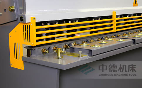 ●剪板機(jī)前穿透式防護(hù)欄,能有效防護(hù)使用者安全又能觀察到剪切位置